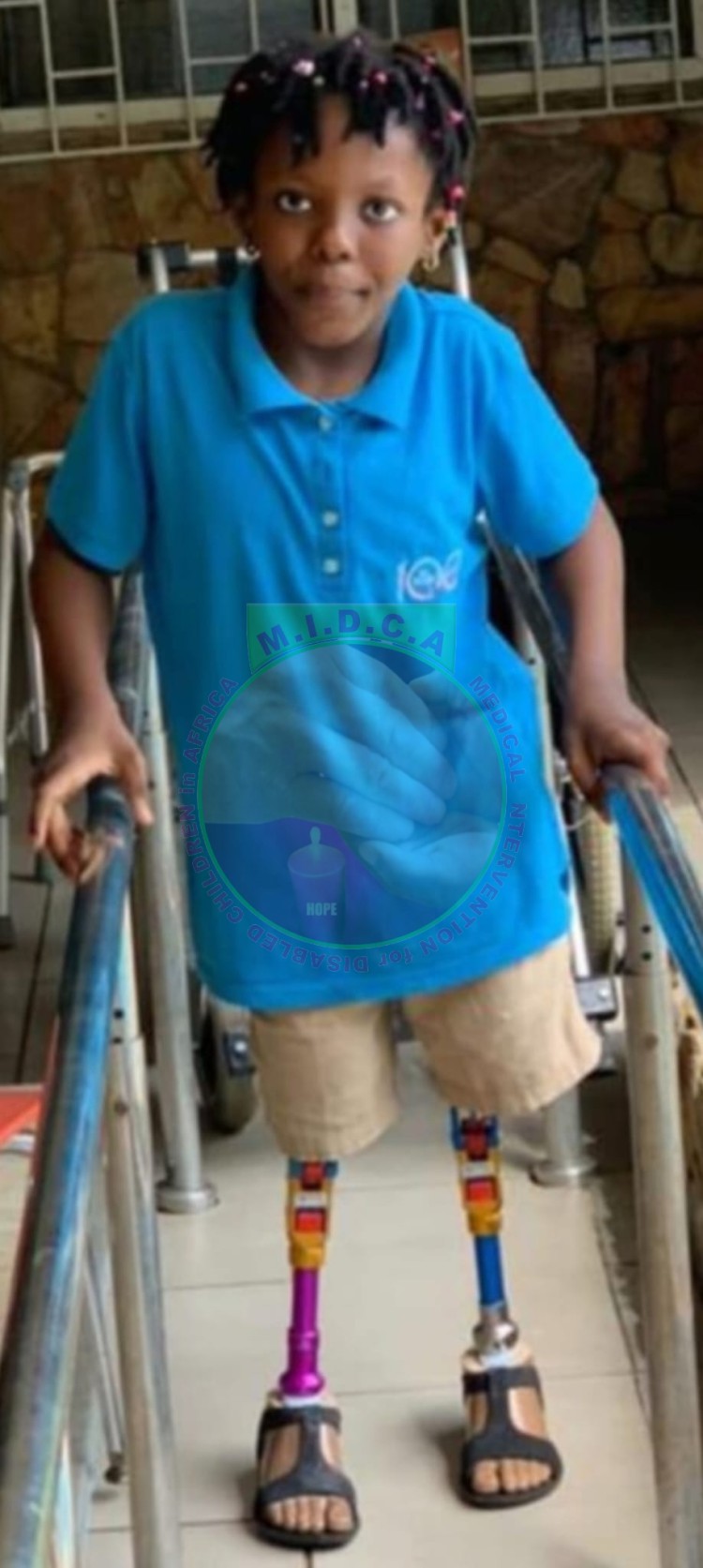 Susana was born with her disability. She had a bilateral amputation. When we met her, we supported her with her prosthetic legs. Susana is in school.